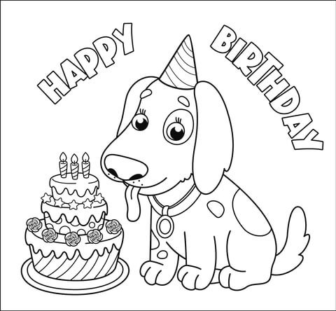 Happy birthday dog ​​coloring page