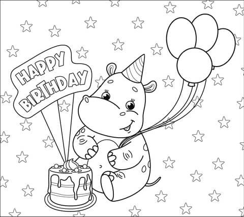 Hippo coloring page Happy birthday